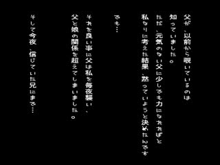 Overview: 毎晩のようにパパやお兄ちゃんに犯されて、イヤらしい身体に育てられている私たち。同性のしかも母親にも言えないような鬼畜なプレイを強いられ、もう心も体も壊れてしまいそう。父と兄にオモチャのように扱われ、辱められ、それが毎日繰り返され…いつしか性欲処理の道具になっている。助けてママ!!だけど…こんなに乱暴にされて感じるなんて…。そんな、大人気の近親相姦調教記録映像作品『ママには、ナイショ』のなかから厳選したシーンを収録した、シリーズ初の総集編オムニバス、全7編。